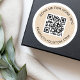 Adesivo Redondo Código QR texto personalizado Papel kraft tem aspe