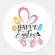 Adesivo Redondo Coelhinho De felz pascoa Com Ovos De Páscoa