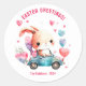 Celebre os feriados Páscoas enfeitando este adesivo de "Saudações Páscoas"! Uma aquarela fofa representando um coelho cavalgando em um carro enfeitado com balões vermelhos, azuis, cor-de-rosa e roxos em forma de coração. Personalize seu texto por baixo da imagem.