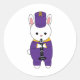 Você é fã de música? Você gosta de adesivos para temas de coelho? Este adesivo tem um coelho branco fofo tocando clarinete vestido com uniforme de banda púrpura e amarela.