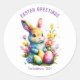 Adesivo Redondo Coelho Pintado Cumprimentos de Páscoa Personalizad