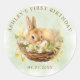 Coelho de Primavera floral Algum adesivo redondo clássico de primeiro aniversario coelho