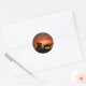 Excelente, tem um vaqueiro rodando um boi num pôr do sol vermelho.