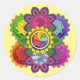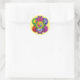 Uma variedade de flores e ventoinhas que se sobrepõem em cores aleatórias do arco-íris.