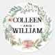 Uma foto de Colleen e William poderia ser colocada no centro do convite, com seus nomes e detalhes de casamento elegantemente escritos acima e abaixo.