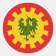 “Or, a duck rising to sinister, wings displayed vert maintaining in its beak a dagger sable, a bordure embattled gules.”
