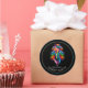 A bright colorful racehorse head and mane on a black background are featured on these derby party round stickers. MATCHING items in our collection.