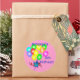 Um buquê de balão brilhante e divertido voa pelo ar amarrado com uma estrela brilhante azul e uma fita vermelha. Personalize esses adesivos coloridos com qualquer nome e idade de aniversário. Mostra "8º aniversário da Angela!" em uma rosa claro. Altere facilmente todo o texto e até altere a cor, assim como o fundo rosa. Basta clicar em personalizar e clicar em "cores" para alterá-lo.