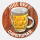 Copo de cerveja com cabeça branca com seu slogan de texto engraçado ou seu nome que você pode personalizar ou excluir.