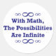 Com a Matemática, as Possibilidades São Infinitas... Esta design engraçada é perfeita para qualquer professor de matemática ou estudante de matemática com formação em matemática. Estudando ou ensinando álgebra, trigonometria, geometria, cálculo, ou adição e subtração simples, esta design é para vocês. Veja nosso compro para camisas e presentes de matemática mais singulares e engraçadas.