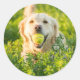 Os adesivos redondos clássicos com o retrato de uma linda Ouro de uma cadela de varejo.