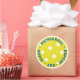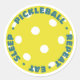 Ímã redondo de pickleball moderno com a sequência "COMA, DORMIR, PICKLEBALL, REPETIR" sobre um fundo de bola de pickleball. Adesivo de embelezamento perfeito ou selo de correspondência.