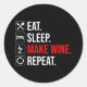 Adesivo Redondo Coma. Durma. Fazer Vinho. Repetir