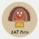 Adesivo Redondo Coma Pizza Com A Turquia De Ação De Graças