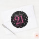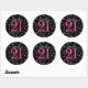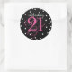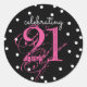 Adesivo Redondo Comemorando 21 - 21º Aniversário Rosa Preto Branco
