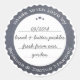 O toque perfeito para um presente caseiro da cozinha, este quadro e etiqueta branca de cinza é uma mistura deliciosa de chic e rústico e pareceria excelente em um frasco de conservantes amarrado com fita de gingham. Não se esqueça de personalizar com seu nome e mensagem pessoal. Insira uma descrição ou uma data de latência nas linhas 1 a 4 ou apenas "limpar" cada uma para remover o texto impresso e criar rótulos que possam ser escritos manualmente posteriormente. Use este adesivo circular em frascos de latas, caixas de cupcake e para fechar o plástico de presente para produtos cozidos. Design � 2birdstone 2014 todos os direitos reservados.