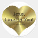 Dourado coração com a citação "Jesus que confio em você" da devoção do Compaixão Divino