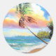 As cores são lindas nesta cena de paisagem marinha que inclui palmeiras e um veleiro. Apresentando as pinturas originais em óleo do Artista Mazz