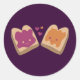 A manteiga de amendoim e a gelatina são uma das únicas comidas que são completamente compatíveis juntas e apaixonadas. Esta apresenta duas fatias de pão com manteiga de amendoim e geleia espalhadas e elas parecem adoravelmente umas às outras. Excelente de presentes de Dia de os namorados ou aniversário também.