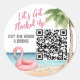 Adesivo Redondo Clássico com Código QR "Noiva Compra uma Bebida para a Noiva". Um tema de praia com aquarela descolada em tons de rosa e azul-turquesa, que define o clima para uma escapada de praia com a noiva e suas melhores amigas. De viagens para a Flórida, Califórnia, ou mesmo algo mais internacional como México, Havaí ou Bahamas, o fim de semana das meninas vai ser incrível! Cadeira de praia rosa e branca, guarda-sol e até um flutuador de flamingo para diversão extra. Palmeiras balançando, conchas para coletar - tudo sobre aquele clima tropical de praia relaxante. Com fontes modernas que adicionam um toque estiloso, é o visual perfeito para o seu fim de semana de despedida de solteira. Só você e sua turma, criando memórias contra um pano de fundo de areia e mar. Confira