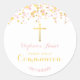 Adesivo Redondo Comunhão Rosa e Dourado Confetti