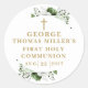 Este elegante adesivo floral verde-oliva moderno, primeiro adesivo da comunhão sagrado, pode ser personalizado com sua informação na tipografia do ouro moderna. Projetado por Thisnotme©