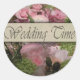 Desperdício de flor antigo com flores rosa, brancas e creme e "hora do casamento" na letra do roteiro. Perfeito para convites para casamentos vintage, salvo a data ou outras ocasiões de casamento.