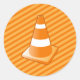 Um cone brilhante de segurança de tráfego laranja num fundo listrado correspondente. Veja os outros produtos com este design abaixo.