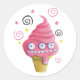 Adesivo Redondo Cone de Sorvete de Monstro Rosa