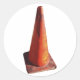 Isolamento de fotos de um cone de trânsito de plástico laranja. Devagar para a zona do cone. Construção de estrada à frente.