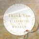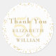Confetes de ouro do 50º aniversário obrigado, adesivo redondo clássico. Personalize com seus nomes em letras douradas elegantes. Perfeito para selos de envelope ou adesivos de lembrancinhas. Criado por Thisisnotme©