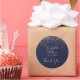 Adesivo Redondo Confetes dourado rosa tipografia azul marinho obri
