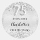 Um fundo com aparência de prata falsa decorado com confete. Personalize e adicione uma data e um nome. Letras negras. 75 escrito com uma fonte no estilo do balão.