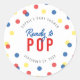 Adesivo "Pronto para Pop" do chá de fraldas Confetti com confete em vermelho, azul e amarelo. Personalize-o com seus detalhes substituindo o texto do marcador de posição. Para obter mais opções, como alterar a fonte, o tamanho/cor do texto ou o espaçamento entre letras, clique no botão "Personalizar". *Observe que a Marca d'água do Zazzle que aparece na visualização de zoom NÃO aparecerá no produto impresso final. © Rosewood e Citrus