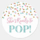 Adesivo Redondo Confetti Dourado Azul Rosa Ela está pronta para Po