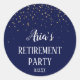 Estes Dourados Confetti no Marinho Blue Remuneration Party selam são perfeitos para uma elegante celebração ou recepção de aposentadoria. O design apresenta confete falsa em ouro sobre um fundo azul marinho com caligrafia branca clássica. Personalize os adesivos com o nome do aposentado e a data do evento.