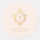Adesivo Redondo Confirmação de Menina Rosa Falso Dourada Cruz em C