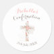 Um adesivo clássico de confirmação circular elegante para raparigas com uma cruz floral num fundo branco. Personalizar com nome, texto e data.