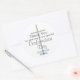 Elegante Obrigado Confirmação dos autocolantes. Simples cruz prateada pintada manualmente com sotaques dourados contra fundo branco. Personalize com o nome do seu filho em texto azul e data em texto preto. Trabalho de arte gráfico original e Design © TamiraZDesign.