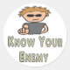 Conhece o seu design inimigo com uma pessoa apontando para o espectador e a declaração para conhecer seu inimigo abaixo. Uma simples afirmação em um gráfico de atenção legal.