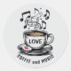 Comece seu dia com a perfeita harmonia do café e da música. Este adesivo apresenta uma taça de café confortável com notas de vapor musicais, caprichosas e ascensões no ar, aliada a um biscoito fofo adornado com um coração. A frase "Love Coffee and Music" gravatas tudo junto, fazer-o como algo incontornável para amantes de café e entusiastas de música. Perfeito para decorar laptop, garrafas de água, cadernos de anotações e muito mais. Vem em conjuntos de 6 ou 20.