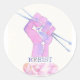 Pinto-de-força cor-de-rosa com agulhas para tricô, haste de fio e palavra RESIST