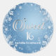 Complete sua celebração com a elegância refinada dos Adesivos Redondos Clássicos Ice Blue Sweet 16 / Quinceanera, projetados para combinar perfeitamente com um evento marcante inspirado num conto de fadas de inverno. Esses adesivos versáteis adicionam um toque final polido a convites, decoração de festa, embalagens de presentes e lembranças, fazendo com que cada detalhe pareça cuidadosamente selecionado. A ilustração apresenta flocos de neve em azul gelo e branco com elegância de um mundo encantado de inverno. O texto é personalizável.