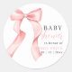 Adesivo Redondo Convite de Chá de Bebê com Laço Rosa, Coquete Rosa