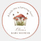 Adesivo Redondo Convite de Chá de Bebê com Tema Borboleta Cogumelo