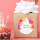 Adesivo Redondo Convite de Chuveiro Nupcial Floral Hibisco Rosa