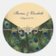 Adesivo Redondo Convites de Casamento Pavão Dourado Elegantes