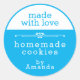 Design azul e branco moderno com texto personalizado. Basta mudar o nome e o produto.