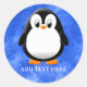 Adesivo Redondo Cor Azul-Azul Personalizada Do Cartoon Pinguim