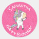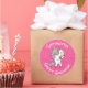 Adesivo Redondo Cor-de-rosa Glitter do Partido Unicórnio